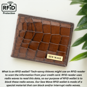 -Elevate your everyday style with this sophisticated men’s wallet. Crafted from premium leather, this wallet showcases an exquisite deep-cut crocodile pattern in a rich tan colour that exudes luxury and refinement. The burnished finish adds character and depth to the leather, making each piece uniquely distinctive. The meticulously detailed construction features precise stitching and a sleek gold-tone brand emblem that adds a touch of understated elegance. This wallet combines classic design with practical functionality, offering ample space for your essential cards and currency while maintaining a slim profile that fits comfortably in your pocket. The superior leather construction ensures durability for daily use, while the timeless aesthetic makes it a versatile accessory suitable for both formal and casual occasions. The warm tan shade complements any outfit, making this wallet an essential accessory for the modern gentleman who values both style and substance.